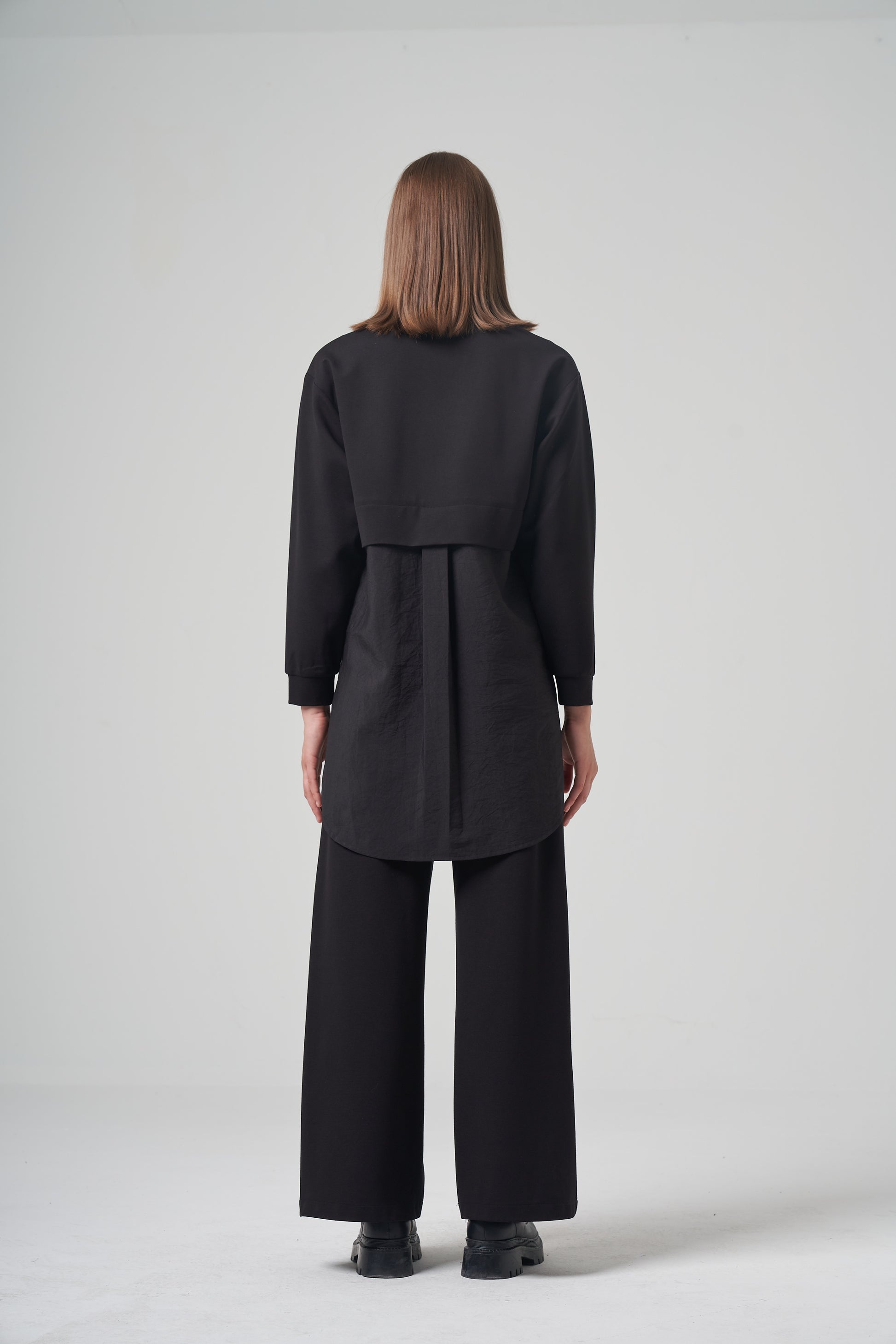 Contemporary elegance defined. This tunic-length top features a modern high-low hemline that provides extra coverage at the back. The minimalist black silhouette is elevated by asymmetrical metallic gold buttons, making it a versatile choice that transitions effortlessly from office hours to evening plans.